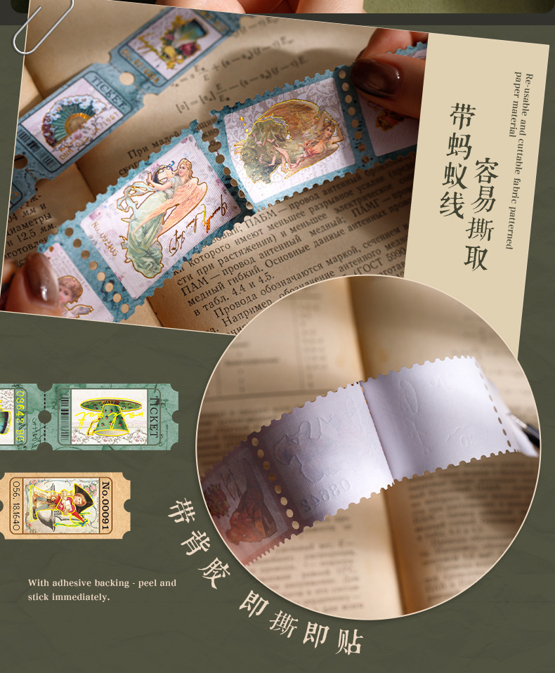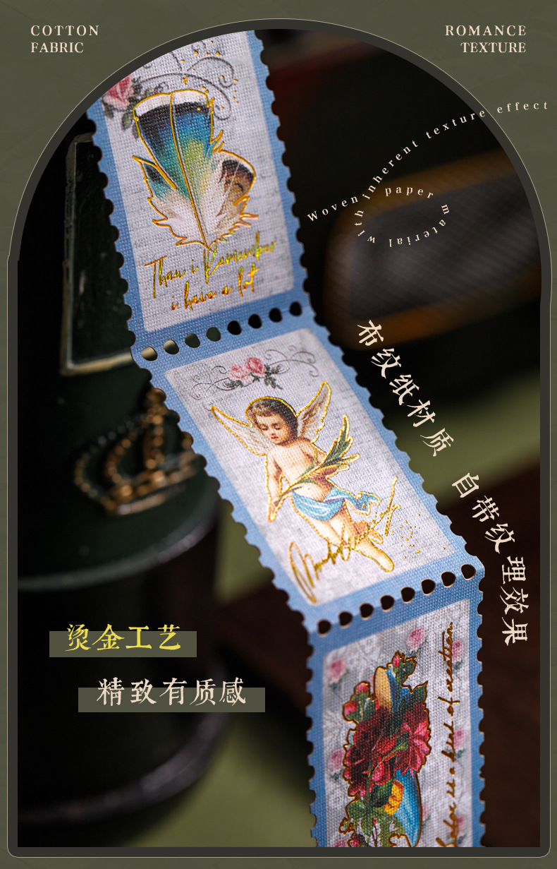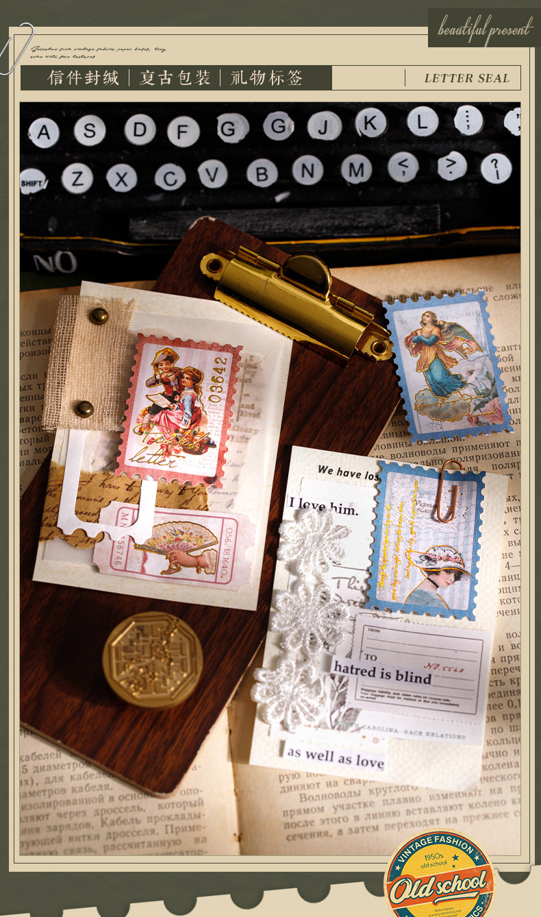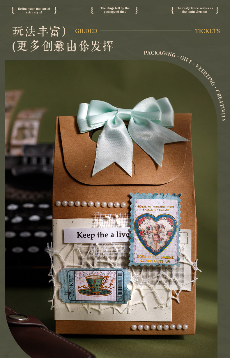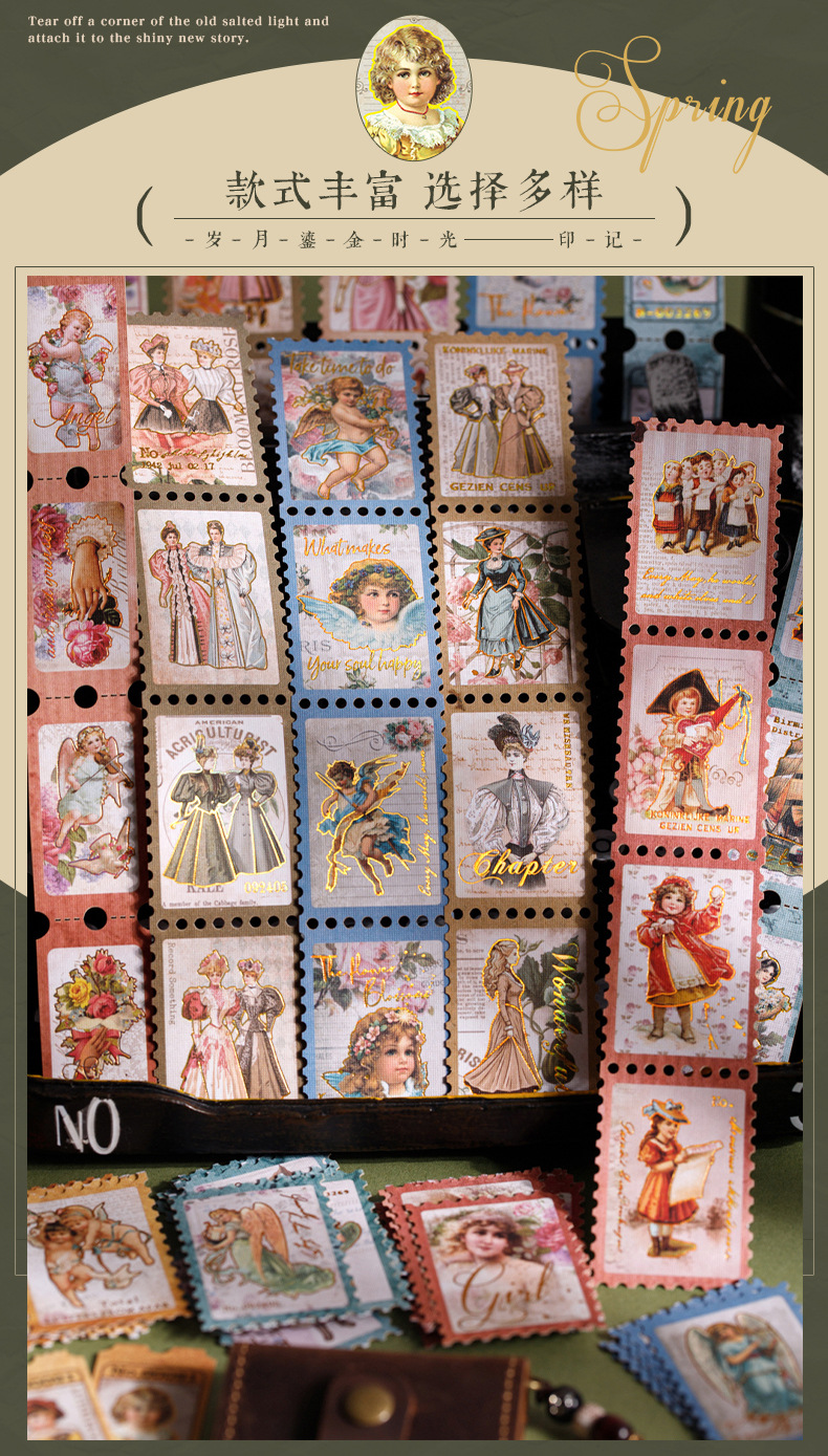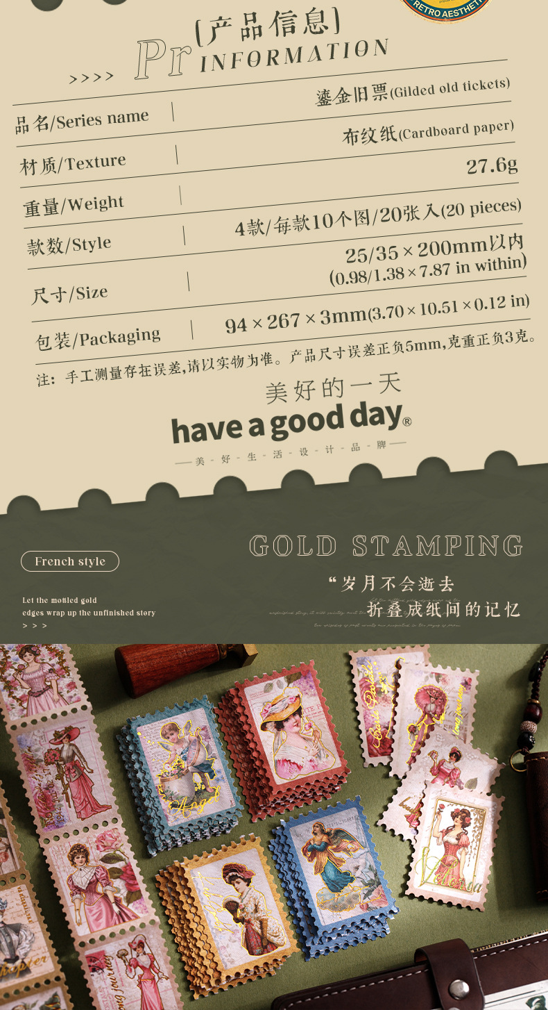 Vintage themed gold stamped long paper stickers 4 Designs 20 Pcs