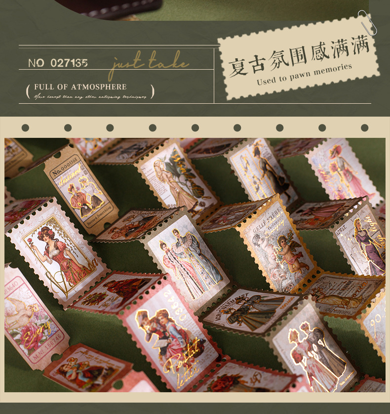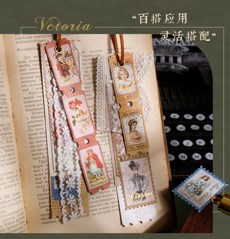 Vintage themed gold stamped long paper stickers 4 Designs 20 Pcs - ViktaShop